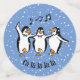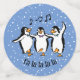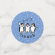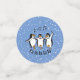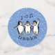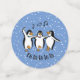Dancing Singing Pinguins Design Table Confetti auf einem schneebedeckten Hintergrund, mit anpassbarem Text und Farbe.