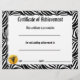 Dieser Tanzpreis zeichnet sich durch eine lustige und angesagte Zebra-Druckgrenze aus und bietet dem Einzelnen mit seiner Unterschrift einen personalisierten und herausragenden Schreib.Das Zertifikat wird mit einer Silhouette eines Tänzers ergänzt, der einen Arabesken in einem goldenen Emblem in der verlassen unteren Ecke macht - dieses Zeugnis eignet sich perfekt, um einer Ballerina in einer Tanzvorführung vorzustellen.