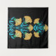 Dieser exquisite Wandteppich zeigt ein atemberaubendes Blumenmotiv, das durch die Grandeur des Mogulreiches inspiriert wurde. Das aufwändige Design ist mit zarten gelben Blumen mit blauen Stielen, die auf einem schwarzen Hintergrund hübsch angeordnet sind, ausgestattet. Dieses Stück ist ein Beleg für die zeitlose Schönheit und Eleganz der Mogulkunst, die jedem Raum eine Touch von echter Eleganz verleiht.
