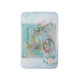 A beautiful spattered polychromatic water colored bicycle with flower flower baskets on blue burlap rimmed with white filigree, and with a greenish gray and white textured border around the blue burlap. crédit: Pixabay.com - Image# 2416366, Image# 489879, Image# 2148492, Image# 1064162