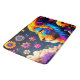 Ce tapis de bain a un design de lion dessus.