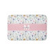 Personalized Elegant Wildflower Monogram Shower Curtain. Add a soft, colorful touch to your bathroom with this elegant design featuring a delicate wildflower pattern in pastel shades of pink, purple, blue, yellow, and green on a white background. At the center, a pink bar stretches across with a white and gray monogram for a graceful, personalized accent. All colors can be changed to match your decor. Perfect for weddings, housewarmings, or birthdays, this floral shower curtain brings a fresh, timeless look to any space.
