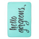 Tapis de bain unique avec "Hello Gorgeous" en calligraphie brosse.