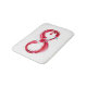 Infinity symbole of continuous stream of red pouring into glass glass glass on white background.