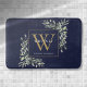 Tapis De Bain Marine Bleu Et Or Monogramme Verdure Feuilles