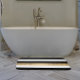 Tapis de bain chic réalisé dans une motif contemporaine à rayures audacieuses, dans les tons noir, blanc et or. Des articles de toilette correspondants sont disponibles. Vient en trois tailles.