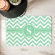 Rafraîchissez votre décor de salle de bain avec ce tapis monogramme vert menthe et blanc chevron. Le motif zigzag tendance ajoute une touche moderne et élégante, tandis que le monogramme central personnalisable le rend unique. Le ton vert menthe doux est parfait pour créer une atmosphère calme et chic dans n'importe quelle salle de bain.