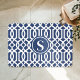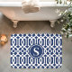 Tapis De Bain Monogramme de treillis bleu et blanc de la marine