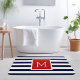 Tapis de bain monogrammed personnalisé avec un motif à bandes préppy en bleu marine, rouge et blanc. Personnalisez-le avec votre monogramme initial dans un cadre carré. Utilisez les outils de conception pour choisir les couleurs arrière - plans, modifier les polices de texte et les couleurs et ajouter vos propres photos pour créer un design unique pour correspondre à n'importe quel décor de salle de bain.