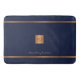 Tapis de bain monogrammed luxe tendance, exclusif à l'aspect élégant, avec un carré de parties scintillant métallique en cuivre faux or et rayures sur un élégant arrière - plan bleu marine élégant. Personnalisez-le avec le nom et le monogramme initial. Il peut s'agir d'un cadeau personnel ou familial élégant et personnalisé pour un anniversaire, un ménage, une retraite, un jour férié, un anniversaire ou toute autre occasion.