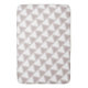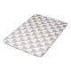 Tons doux de rougissement, contraste avec un motif géométrique mod dans ce tapis de bain.