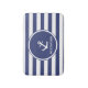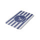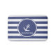 Ce tapis de bain bleu et blanc a les rayures horizontales. Au centre, il y a l'ancre et un endroit d'un bateau blanc pour écrire le nom du destinataire.