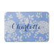 Tapis De Bain customisé : Fleurs Blanches Gracieuses/Style Classique Delft Motif/Pastel Bleu Arrière - plan/Typographie De Script Moderne Pour Personnalisation