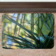 Conçu par la Nature ! Ce tapis de bain aux tons tropicaux vert, bleu et jaune avec des bandes lumineuses et foncées contrastées est créé en regardant à travers les feuilles de palmiers et attraper des touches de ciel bleu et de feuillage éclairé par le soleil. Ressentez les Vibes Tropicales ! Cette image est une photo naturelle originale de JLW_PHOTOGRAPHY