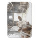 Aquarelle Vache Hereford dans une grange avec un coq sur une échelle de loft de foin.