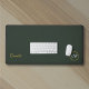 Un Tapis de bureau élégant sur fond vert forêt avec un prénom couleur or et des lettres monogrammes : une belle idée de décoration pour le bureau ou la maison si vous travaillez à la maison !