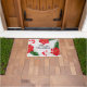 Ce tapis de portes de Noël est présenté avec une impression festive de baies rouges et de poinsettias. Customisez cet objet ou achetez tel quel. Image stock freepik.com