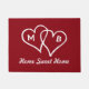 Tapis de porte rouge avec coeurs et initiales imbriqués, plus citation. Accueil douce maison. Faites votre propre paillasson intérieur / extérieur personnalisé avec la couleur et le dicton arrière - plan personnalisé. Ajoutez votre propre message de bienvenue, nom de famille, monogramme, nom de famille ou citation amusante. Idée cadeau mignonne pour la nouvelle maison / chauffage domestique, salle de mariage, magasin, boutique, bureau etc. Typographie de script tendance avec symbole d'amour verrouillé. Thème romantique. Modèle personnalisé. Créez votre propre tapis / tapis d'entrée pour porte d'entrée / entrée ou hall. Décor / décorations maison personnalisables pour votre maison confortable. Très beau cadeau pour marié, marié et marié, mari et femme.