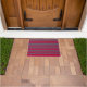 Tapis de porte rouge rayé gris.