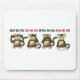 N'entendez aucun mal, ne voyez l'aucun mal, ne parlez aucun mal, n'ayez aucun amusement. Parodie des 3 singes sages.