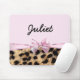 Tapis de souris à impression arc rose clair et léopard guépard. Ajouter du texte ou laisser vide.