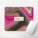 Un tapis de souris au design abstrait super. Les couleurs rose et noire se mélangent et se mélangent dans un mouvement tourbillonnant. Saupoudrer de parties scintillant en faux or entre les couches. Un cadre rectangle blanc avec une fausse bordure en feuille d'or, superposé avec votre texte personnalisé à l'intérieur.