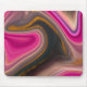 Un tapis de souris au design abstrait super. Les couleurs rose et noire se mélangent et se mélangent dans un mouvement tourbillonnant. Saupoudrer de parties scintillant en faux or entre les couches.