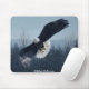 Un aigle à tête blanche géant américain survole une tempête de neige soudaine. Cette image est l'une des nombreuses de notre collection "Beaux Oiseaux" d'art et de photos de Mousepads de haute qualité. 25 % des recettes sont versées directement aux personnes merveilleuses et attentionnées du refuge de désintoxication de la faune de Prince Rupert, ici à Prince Rupert, en Colombie-Britannique, au Canada. Merci de nous aider à les aider.