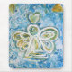 Le tableau est d'un ange blanc et or aux accents verts entouré d'un ciel tourbillonnant bleu et de coeurs dorés. Les anges ont un coeur blanc au lieu d'un halo au-dessus de la tête de l'ange.