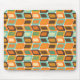 Ce tapis de souris a un design moderne du milieu du siècle de rectangles arrondis penchés sur le côté avec des rectangles inclinés à l'intérieur faits de lignes toutes dans les couleurs des années 70.
