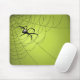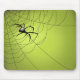 Surfez-vous le Web ? Ce Web est un que vous pourriez vouloir pour observer pour. Une araignée déplaisante se repose en son Web sur un fond vert clair.