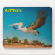 Un pélican volant le long de la plage à Monkey Mia, en Australie occidentale.