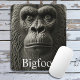 Sasquatch Bigfoot gorilla visage dans l'art de l'air noir et blanc.
