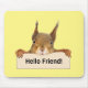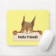 Ce drôle d'écureuil tient une pancarte disant "Bonjour ami". Mignonne mousepad pour vos amis et votre famille amoureux des écureuils !