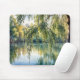 Des branches d'arbres sauvages pendent gracieusement sur un lac calme et réfléchissant entouré d'un feuillage verdoyant