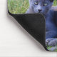 This is a picture of a gray kitty on a Mouse Pad.