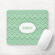 Motif chevron de texture de lin aux tons verts monogrammes. Modèle de pavé de souris personnalisable
