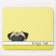 Mignons chien carlin sur blanc et jaune en vichy motif avec nom.