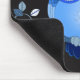 Le pavé de souris a un design monochromatique bleu d'un hibou sur une branche avec des feuilles.