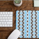 Ce pavé de souris est doté d'un motif géométrique coloré en bleu, gris foncé et blanc.