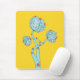Mousepad de fleurs mécaniques avec un drôle de vecteur illustration de fleurs bleues ressemblant à des lotus avec des pétales faits de circuits électroniques sur un arrière - plan jaune personnalisable. Ce design technologique est idéal pour une fille geek.