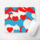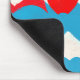 Graphiques de style rétro en rouge, blanc et bleu sur tapis de souris.