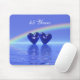 Tapis de souris avec mon oeuvre de coeurs couleur saphir flottant sur l'eau sous un arc-en-ciel avec texte personnalisable qui dit "45 ans".