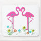 Illustration graphique originale des enjeux roses de yard de flamant avec les fleurs colorées et lunatiques. Joli tapis de souris d'heure d'été qui ferait un excellent cadeau.