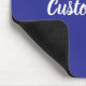 This blue mouse pad has text in white script. The text can be edited to show a custom message or deleted