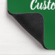 This forest green mouse pad has text in white script. The text can be edited to show a custom message or deleted