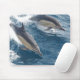 C'est une photographie de sauter de deux dauphins communs de l'eau.