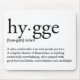 Faites savoir à tout le monde ce que "Hygge" signifie exactement avec un produit simple, mais élégant, avec la définition de dictionnaire typographique. Le mot hygge vient d'un mot danois qui signifie "bien-être". Mais il est aussi supposé que l'hygge pourrait provenir du mot accolade qui signifie "embrasser". Un moment calme et confortable avec des gens que vous aimez. Une absence totale de frustration, ou quelque chose d'émotionnellement écrasant, souvent apprécié avec de la nourriture et des boissons, des couvertures chaudes et la lumière des bougies.