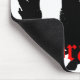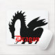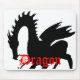 Silhouette noire de dragon sur le mousepad avec le texte rouge.