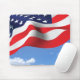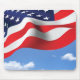 Drapeau américain flottant sur un arrière - plan bleu ciel aux nuages blancs.